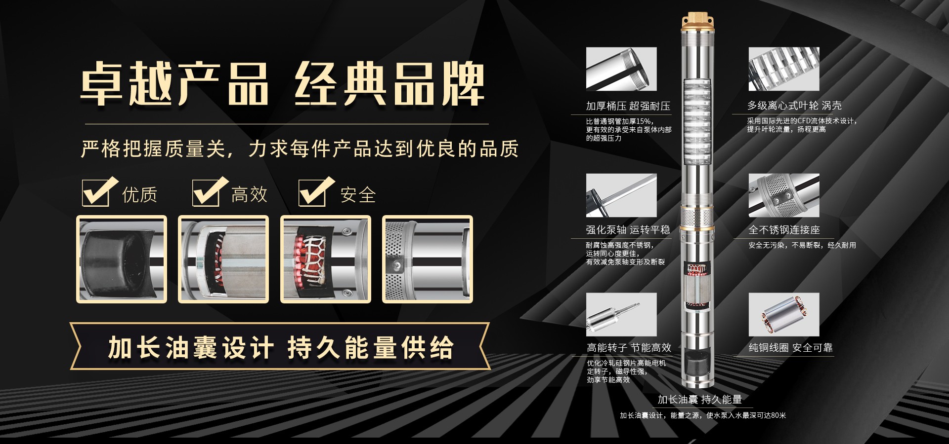 公司始終站在深井泵行業(yè)的前端位置,科研力量、產(chǎn)品和設備技術水平均達到國內(nèi)優(yōu)質(zhì)水平,公司始終堅持走科技興企、自主創(chuàng)新的企業(yè)發(fā)展之路,產(chǎn)品不斷推陳出新,可廣泛應用于農(nóng)業(yè)灌溉、生活用水、循環(huán)供暖、污水處理、市政供水、石油化工、冶金礦山等領域。